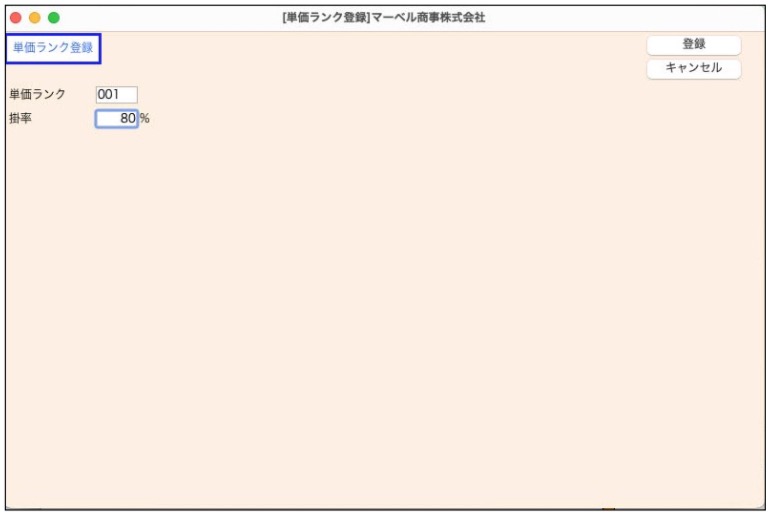 単価ランクコード3桁、掛率3桁以内(小数桁1桁まで)で、設定されたい掛率を登録します。