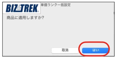 確認のメッセージ画面で、「はい」をクリックすると、単価ランクの一括設定が始まります。