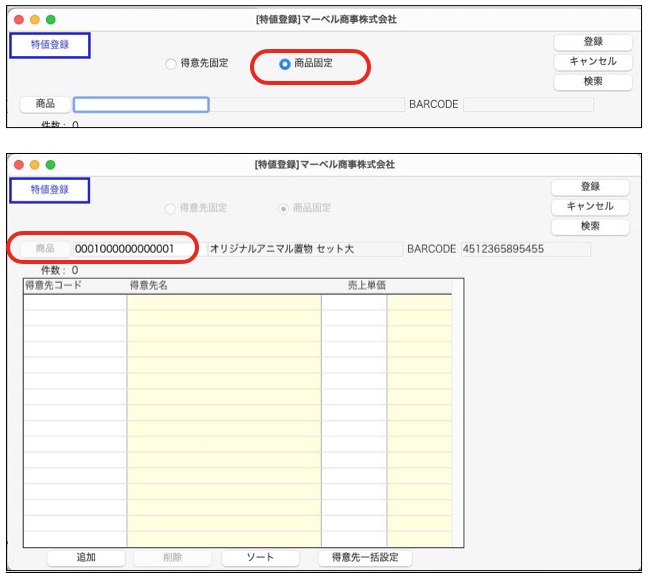 を設定して特値単価の登録が行えます。また、特値単価の金額設定も可能です。