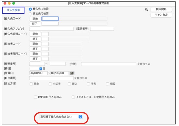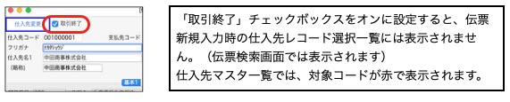 *仕入先の取引が終了となった場合、仕入先マスタにて「取引終了」設定が行えます。