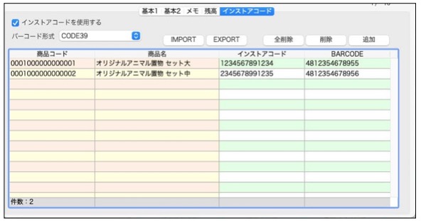 インストアコードは、外部ファイルからIMPORTが行えます。IMPORT項目の並びは下記の通りです。