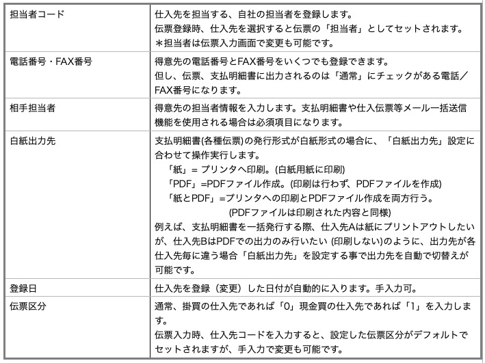 仕入先変更画面では、新規登録時には表示されない以下の項目が追加されています。