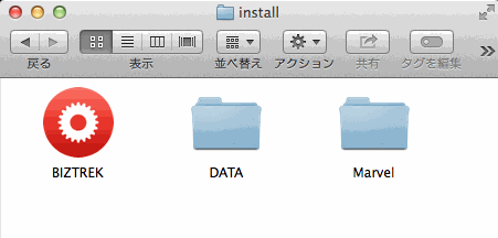 次に、「install」フォルダの中の、「BIZTREK」アイコンをダブルクリックします。