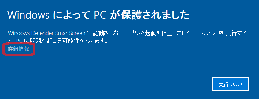 次に下図のウィンドウが表示されましたら、「詳細情報」ボタン→「実行」ボタンの順にクリックします。