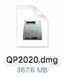 ※既に「QP2020.dmg」という名称のファイルが存在する場合は、「QP2020(1).dmg」というように、名称の後ろに数字が追加されますので、その場合、一番大きな数字のついたファイルが最新のものなので、それを使用します。