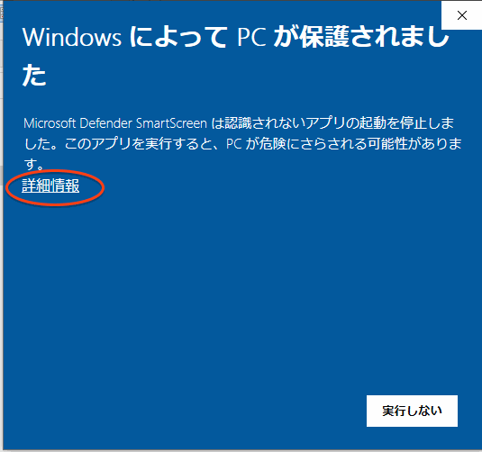 下図のウィンドウが表示されましたら、「詳細情報」ボタン→「実行」ボタンの順にクリックします。