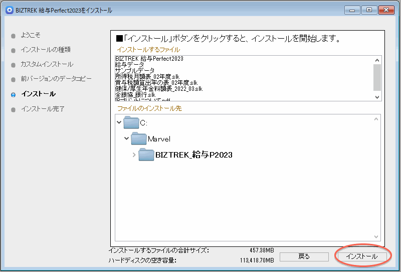 ○ プログラムのみインストール v2023のバージョンアップの時等、プログラムだけを入れ替えたいときに、選択します。