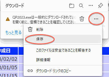 次に、 下図の「・・・」の部分をクリックし、「保存」をクリックします。
