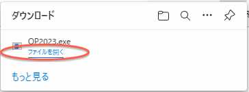 残り時間の表示がなくなったら、ダウンロード完了ですので、「QP2023.exe」の部分をクリックします。