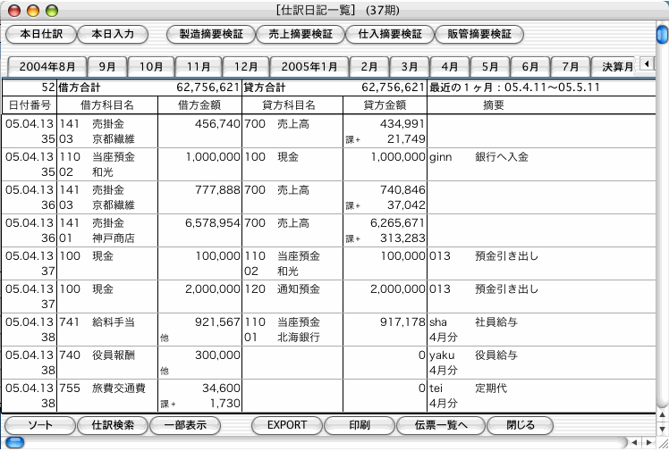[仕訳日記一覧]           →           →           →     [伝票訂正画面]