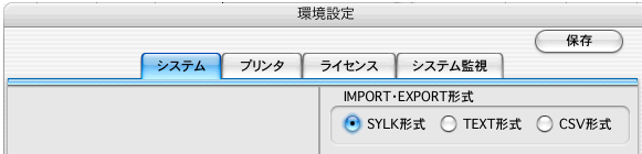 データの読込み(IMPORT)や書き出し(EXPORT)の、ファイル形式の設定をするメニューです。