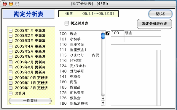 3."勘定分析表作成"ボタンクリック。