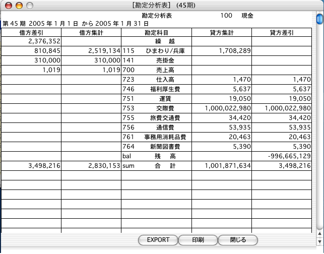[勘定分析表表示]