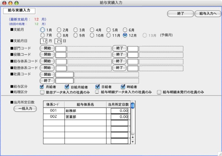 3.給与実績一覧が表示されます。 画面や操作方法は、 「2.給与入力 ■5.給与明細入力」と同じです。