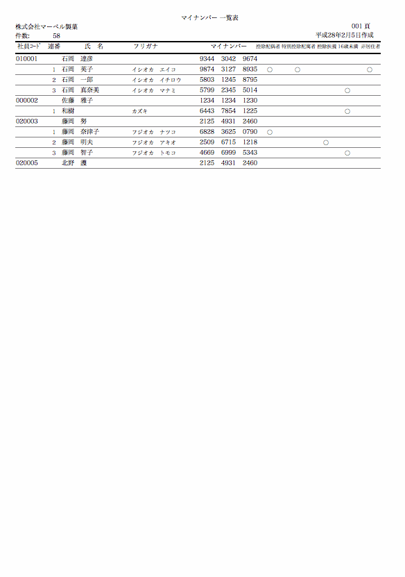 マイナンバーの一覧表を印刷します。