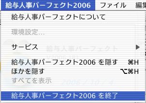 メニューバーの「給与人事パーフェクト2006」からプルダウンメニューの「給与人事パーフェクト2006を終了」を選択します。