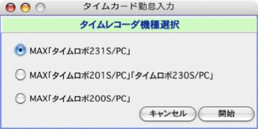 3.機種選択画面で、タイムレコーダーの機種をどれか選び「開始」ボタンをクリックします。