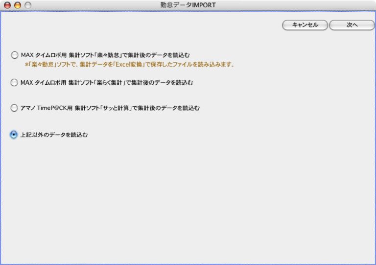 1.給与メニューから「勤怠データIMPORT」を選択します。