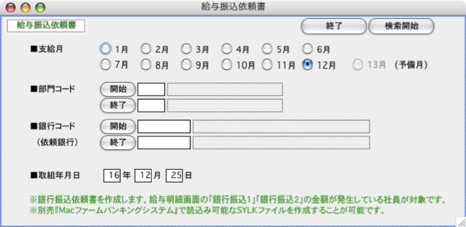 「◎検索開始」ボタンで、該当する給与振込依頼書データの検索が始まります。