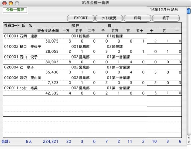 3.「給与金種一覧表」が画面に表示されます。