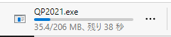 残り時間の表示がなくなったら、ダウンロード完了ですので、「QP2021.exe」の部分をクリックします。