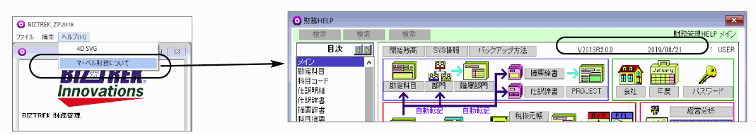 ([ヘルプ]メニュー→「BIZTREKについて」よりプログラム日付が確認可)