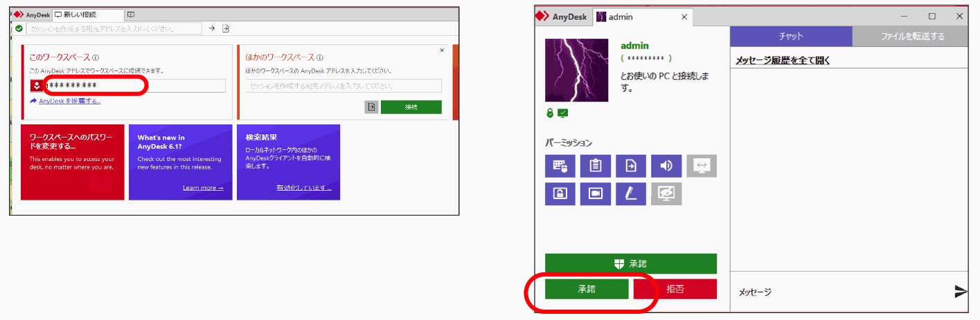 なお、「AnyDesk」は、アクセスしたパソコン側から接続の承認をもらう事で、アクセスが可能になります。