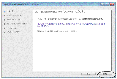 2.「BIZTREK_BackOffice2010」最新版プログラムインストール→起動→一旦終了