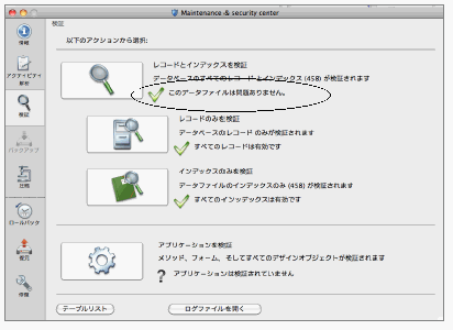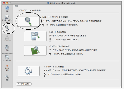 3.画面左の「検証」を選択します。→「レコードとインデックスを検証」を選択します。