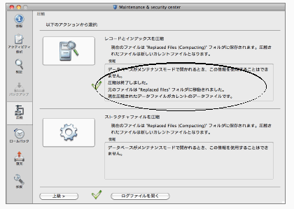 データに何も問題ない場合、「圧縮は終了しました。」と表示されます。