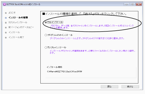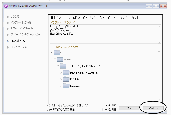 3.「BIZTREK_BackOffice2018」インストール