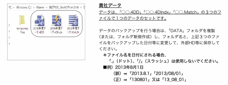 1.「BIZTREK_BackOffice2016」で使用していた貴社データのバックアップコピー