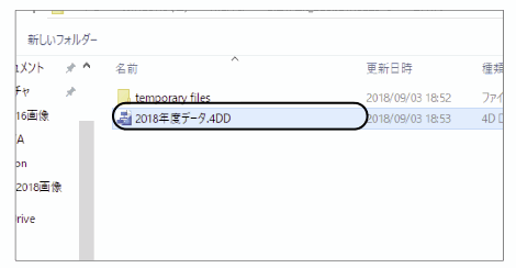 例…(変更前ファイル名) 2017年度データ.4DD →(変更後ファイル名) 2018年度データ.4DD