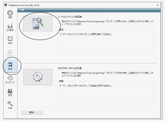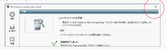 7.「検査」→「圧縮」が終了しましたら、「Maintenance&SecurityCenter」を左上の×ボタンアプリケーションで終了します。