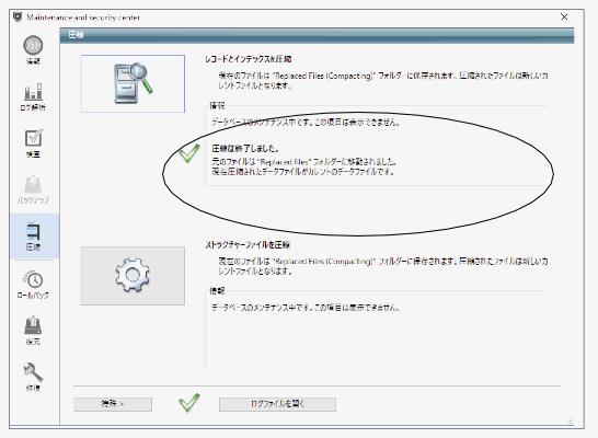 データに何も問題ない場合、「圧縮は終了しました。」と表示されます。