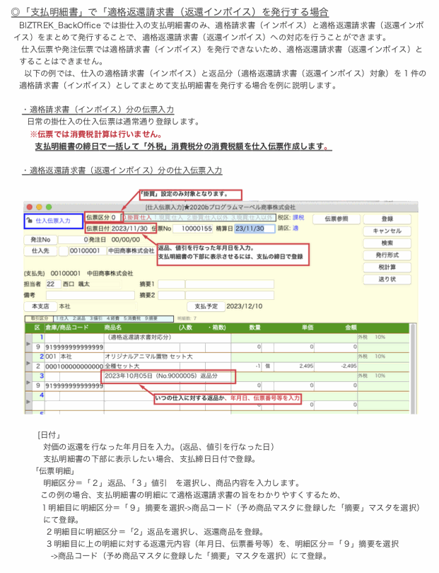 ■「BIZTREK_BackOffice」からの適格返還請求書(返還インボイス)発行方法